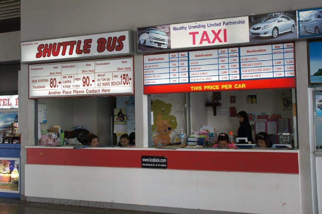 - Самый удобный: купить билет на стойке какого-либо агентства в аэропорту Краби ‒ их невозможно не заметить. В стоимость включены и трансфер до пирса, и сама переправа. Можно приобрести билет туда-обратно, с трансфером до аэропорта или отеля ‒ если планируете на несколько дней остаться в Краби.